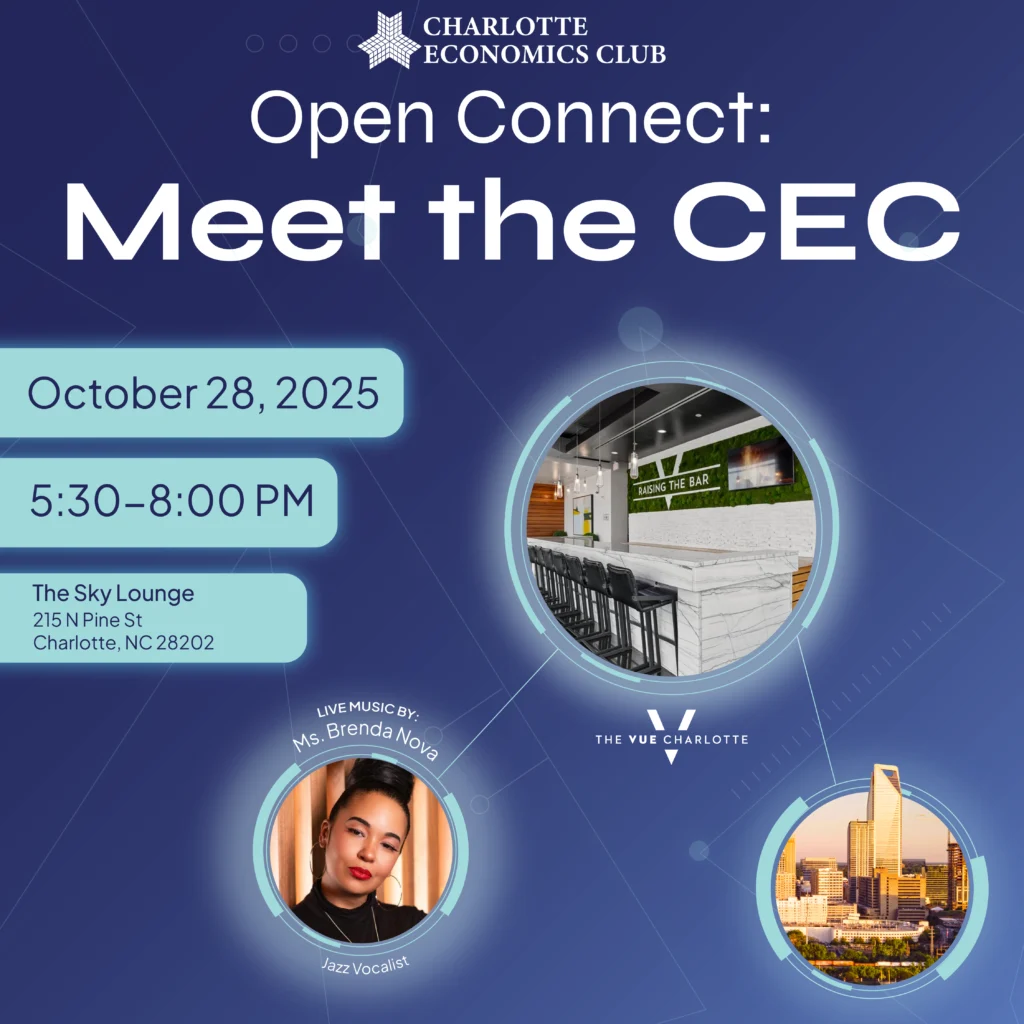 10/28/2025 • 5:30 PM - 8PM The VUE Rooftop 215 N Pine St Charlotte, NC 28202 The Charlotte Economics Club invites you to an inter- generational networking event where seasoned […]